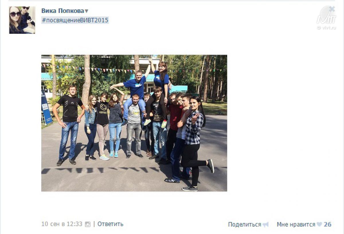 Друзья! С 10 по 20 сентября в ВКонтакте и Instagram вы делились самыми яркими и интересными моментами посвящения первокурсников с хэштегом #посвящениеВИВТ2015. Мы рады сообщить о том, что фотоконкурс завершился и определились 2 победителя,