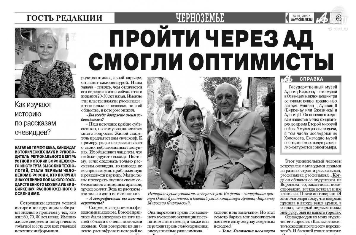 26-29 июня 2015г. сотрудница ВИВТ и Регионального центра устной истории А.-М. И. Карафизи приняла участие в работе ХV ежегодной летней сессии международных курсов преподавателей темы Холокоста «Уроки Холокоста - путь к толерантности», прошедшей в г. Москва и с. Воскресенское Московской области.